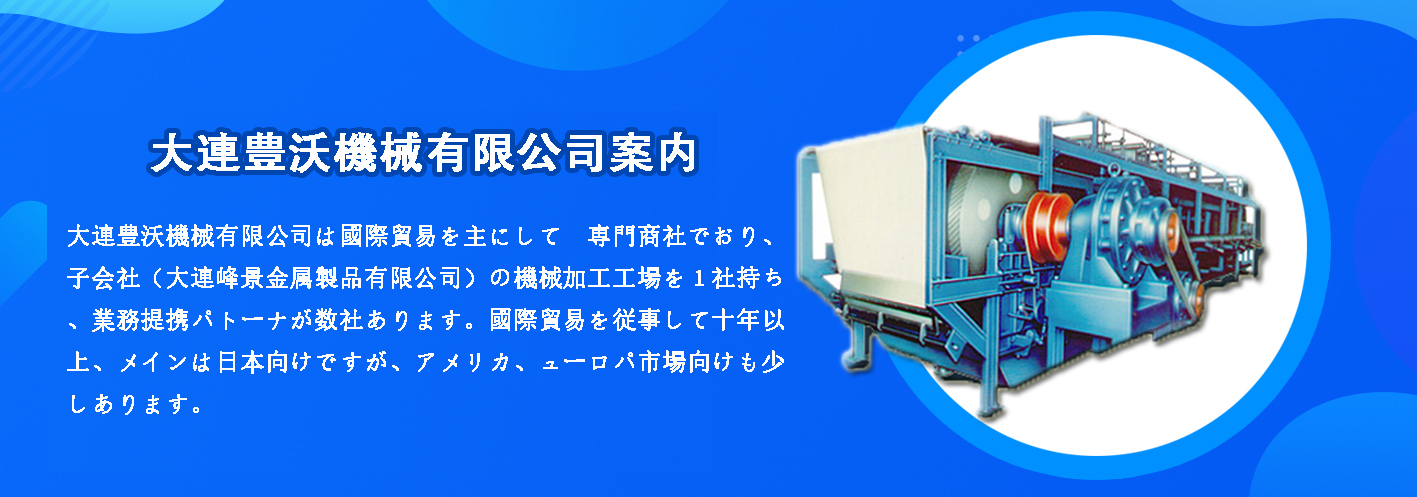 大連豊沃機械有限公司は國際貿易を主にして 専門商社でおり、子會社の機械加工工場を1社持ち、業務提攜パトーナが數社あります。國際貿易を従事して十年以上、メインは日本向けですが、アメリカ、ューロパ市場向けも少しあります。砂鋳造(CASTING)(FC,FCD,FACD,ADI)、ロストワックス(LOST-WAX)、鋳鋼(SC,SCS)、ステンレス(SUS)、ダイカスト(DIE-CASTING)(アルミ、真鍮)、鍛造(FORGING)、プレス(PRESS)、製缶(WELDING)など幅多く分野ております。主要な商品は廚房用品、バーナー(BURNER﹠PARTS)、バルブ、バルブ部品(VALVE&PARTS)、ポンプ、ポンプ部品(PUMP&PARTS)、油圧部品、産業機械部品、車部品(MOTOR﹠PARTS),型(PATTERN)など機械及び金屬製品、ブラチック(PLASTIC)、樹脂製品、ゴム(GOM)製品等。